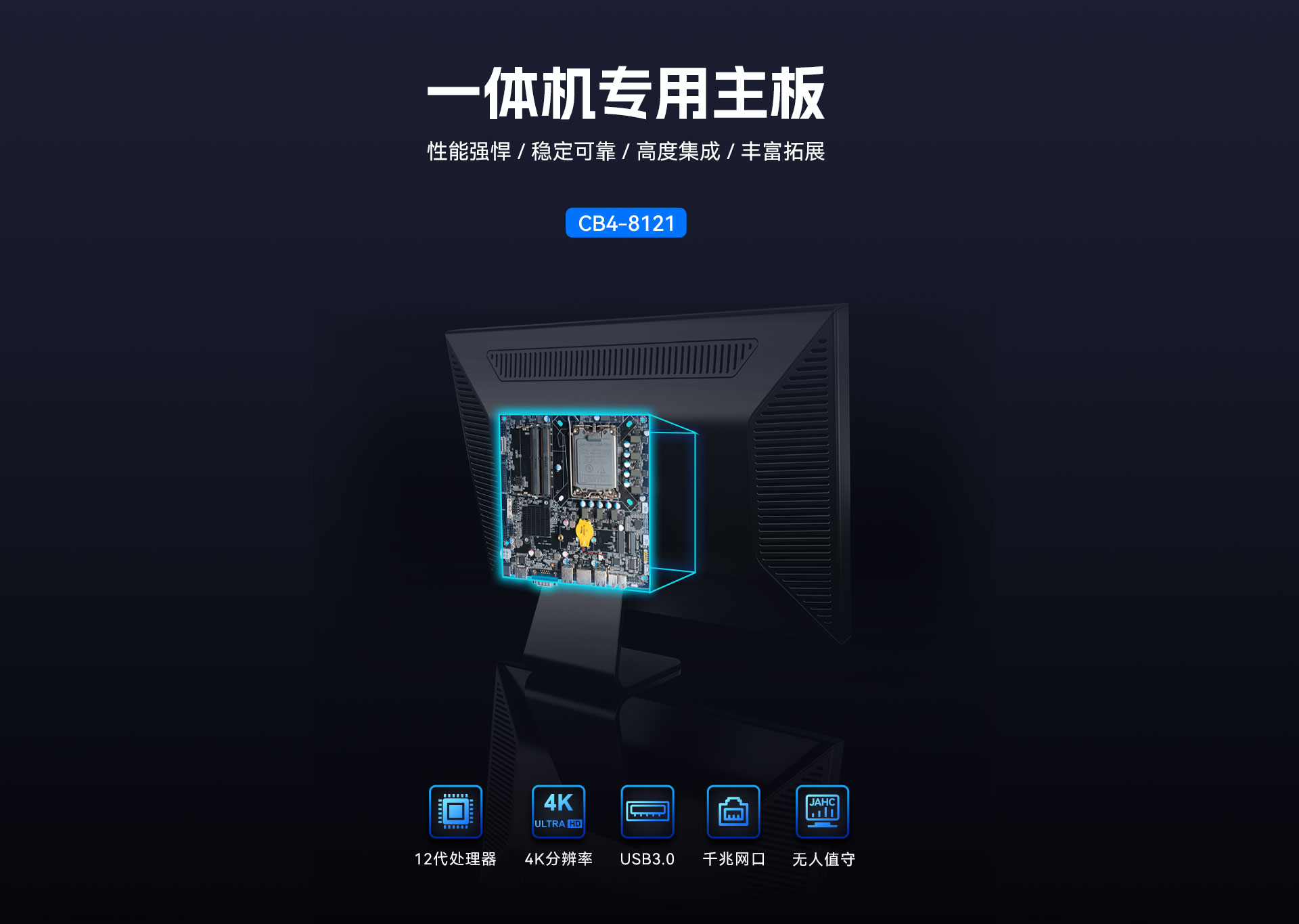 而一体机主板作为一体机的核心组件,其性能直接决定了整机的表现,js555888金沙科技根据以上的市场情况及客户需求,推出这款高性能的基于Thin mini ITX一体机标准设计的一体机专研主板CB4-8121。