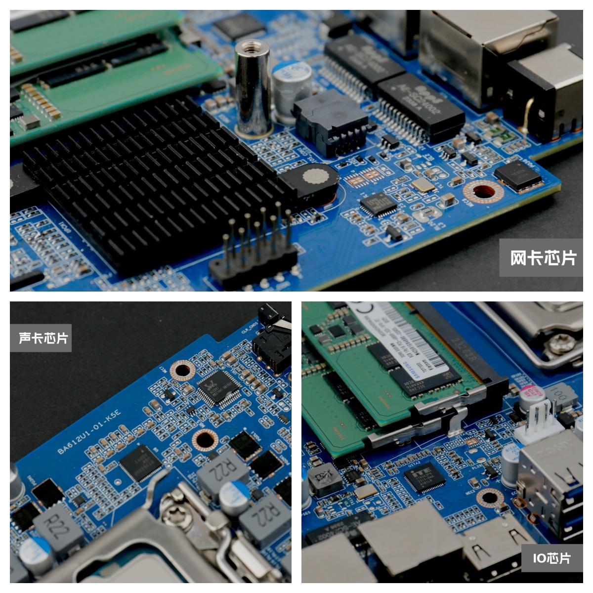 js555888金沙桌面云终端Y-BOX P3主板采用的是6相供电,为H610入门级芯片组,CPU附近都分布了相关的芯片,在千兆网口附近有2个网卡芯片RTL 8111H,在主板背面的音频接口附近可以看到1个经典的“小螃蟹”ALC897 声卡芯片,声卡芯片附近有一个I/0 芯片ITE8613E-LX。