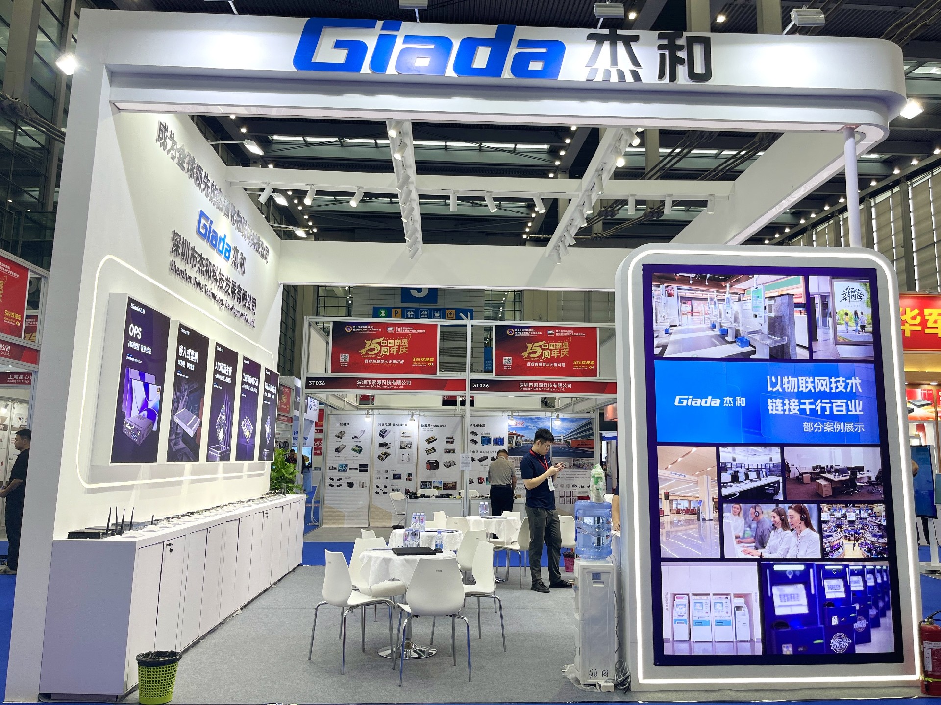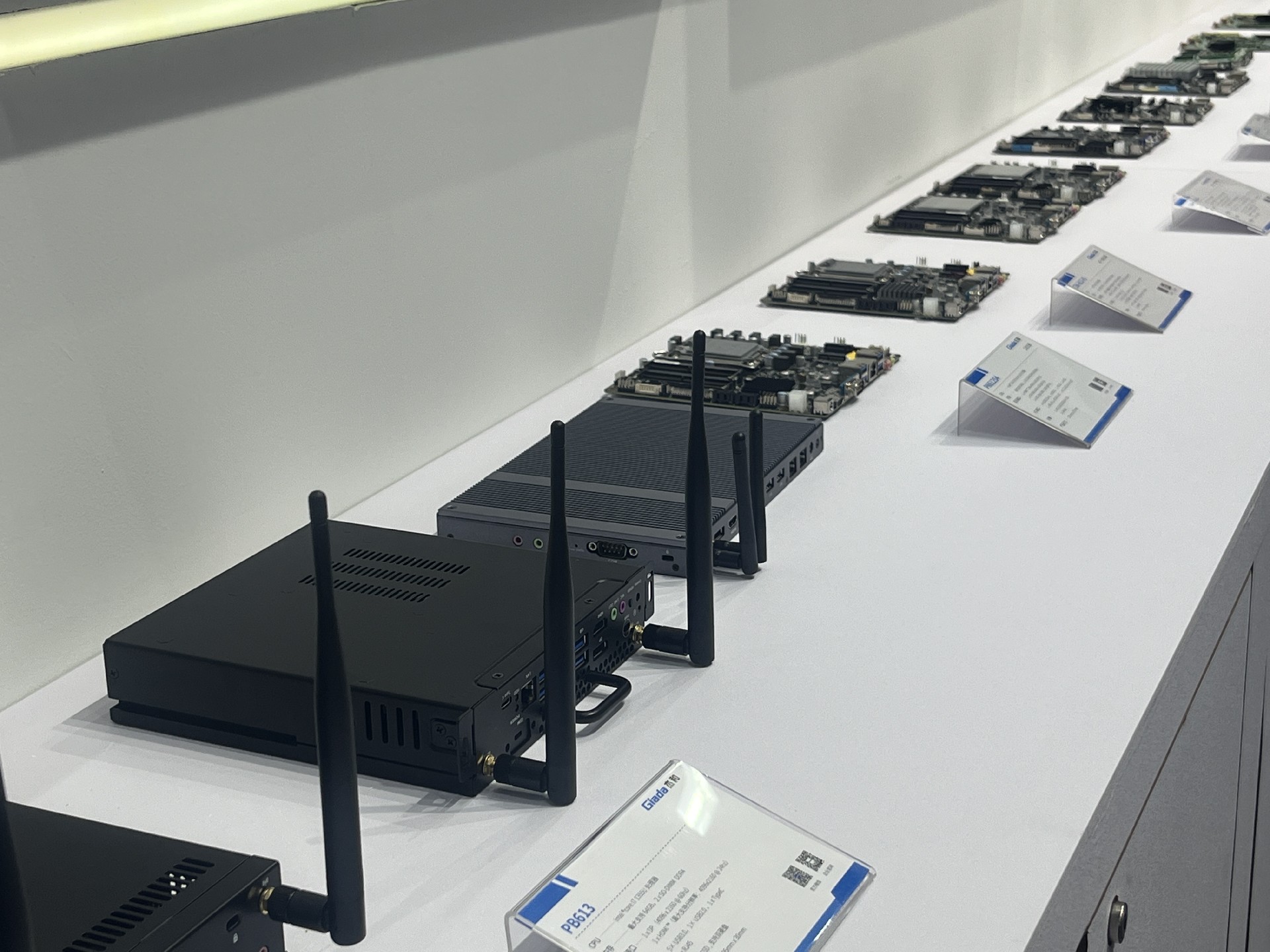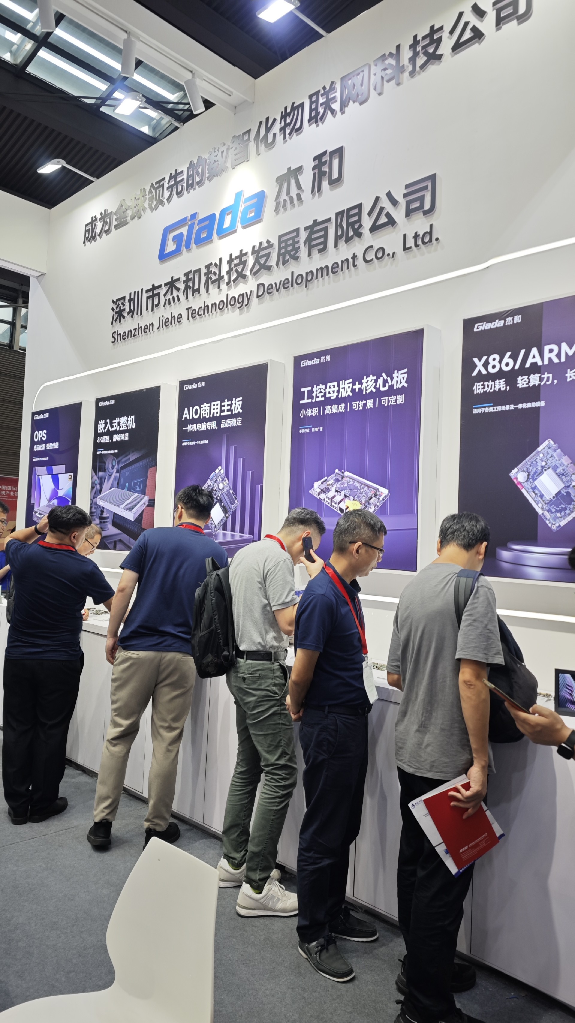 js555888金沙科技展位放置在c位的明星产品和最新产品吸引了众多参观者的目光。展台下方整齐排列着公司的产品,包括主板、嵌入式整机、OPS等,这些产品不仅适用于商业展示领域,还广泛应用于工业、制造业和教育业等多个行业。