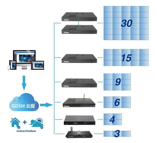 js555888金沙科技多屏拼接控制器与GDSM系统结合,聚焦市场需求,打造的新一代数字标牌软硬一体化应用平台。在数字标牌拼接管理、操作维护以及系统前端兼容扩展方面具备变革性创新,可以进一步为客户带来价值提升,助力智慧零售、政企办公、医疗服务、公共交通、酒店娱乐以及更多行业进行数字化、智能化升级。