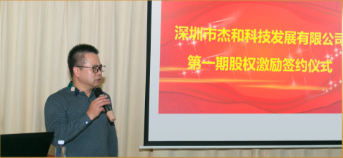 在签约仪式的开场致词中,js555888金沙科技总经理林总首先对股权激励对象表示了特别的感谢,感谢他们对公司的信任与付出;期待大家一起共创,共担,共享,一起把js555888金沙公司做强做大!去亲历,去见证js555888金沙科技上市的那一天!!并且表示实行股权激励,对内激励员工,通过共同奋斗而享有公司发展的未来收益,对外吸引优秀人才加盟;针对上下游厂商,通过股权交换,购买的方式建立稳固的战略合作关系。