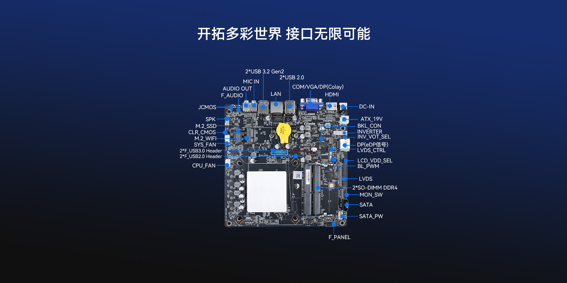 支持LVDS 、HDMI2.0、VGA、DP